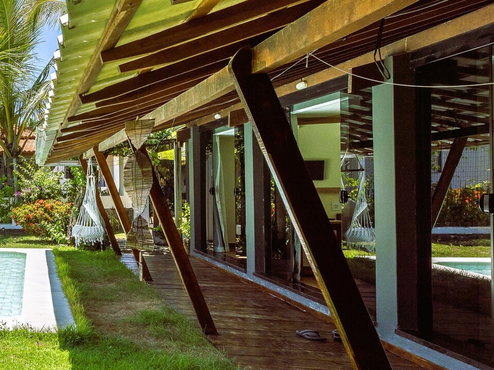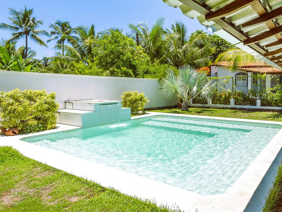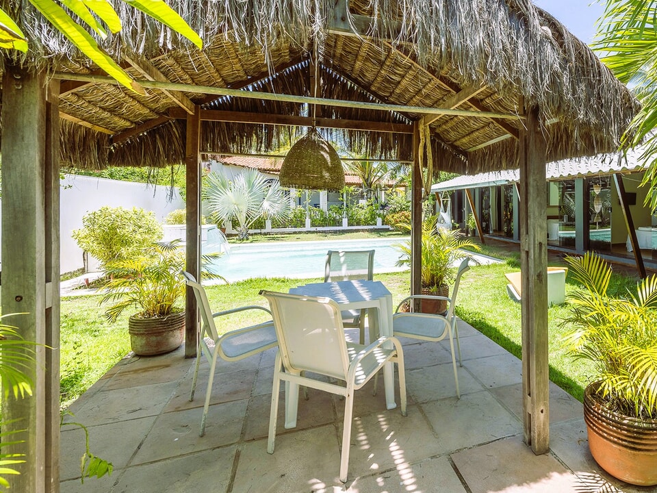 Esta "solução" com 4 Suites Casal, 1 cozinha completa com area gourmet e area de serviço , 1 Piscina, mais 250 metros quadrados de Jardim,TODO PRIVATIVO, visa a deixar totalmente independente e com privacidade a estadia de 8 pessoas, sejam eles 4 casais ou uma familia grande. Esta solução esta dentro da area do Resort a 20 metros da agua do mar e analogamente as demais Suites tem acesso a toda a estrutura do Resort e direito a cafe da manha, limpeza dos quartos e troca de roupa de cama-banho.