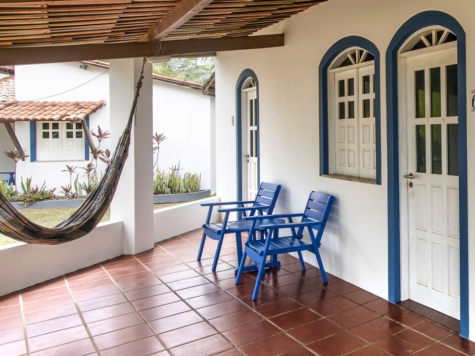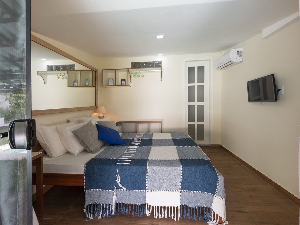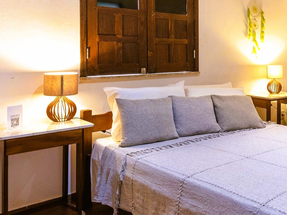 A Suíte de Luxe é pensada para atender um CASAL em Ocasião Romântica (sempre tem um berço para acomodar mais um bebe). Ela é um Suíte com cama de casal (guarda roupa, TV 32 polegada, ar condicionado e frigobar) - além do banheiro com box ducha. A Suíte possui uma varanda frente mar PRIVATIVA com rede e duas cadeiras e mesa em madeira para curtir a vista e a brisa do mar que fica a poucos metros de distancia. A voltagem 220V e sob pedido fornecemos secador de cabelo.