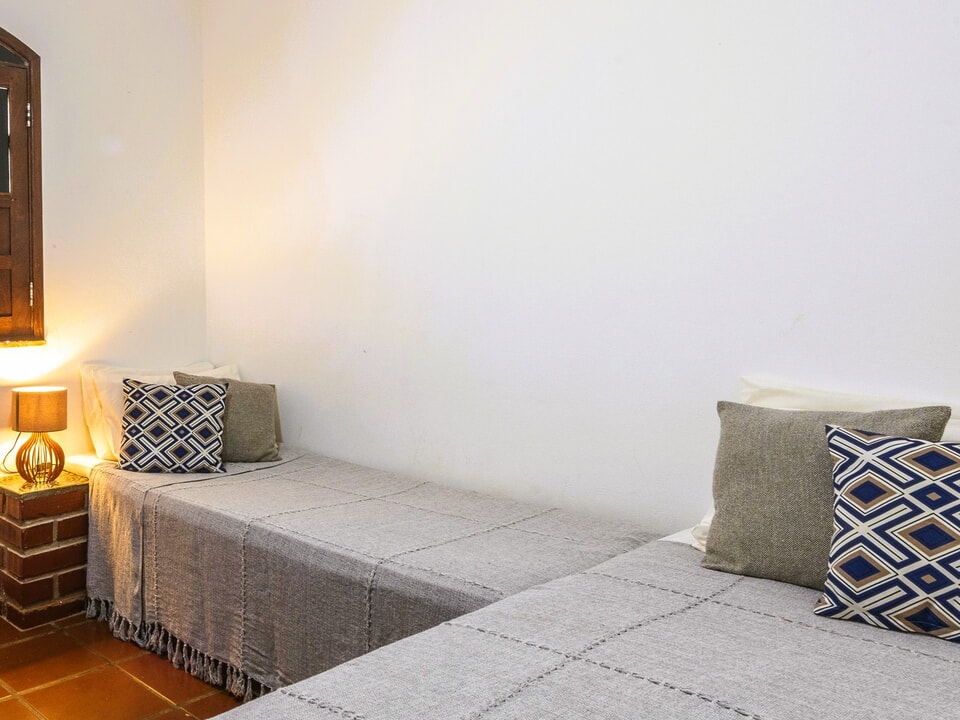 A Suíte Quíntupla frente mar é uma Suíte pensada para atender uma família e mais em particular um CASAL com TRES FILHOS . Ela é um apartamento com dois quartos: um quarto com cama de casal (guarda roupa, TV 32 polegada, ar condicionado e frigobar) mais um segundo quarto com três camas de solteiro com ventilador de teto - além do banheiro com box ducha) A Suíte possui uma varanda frente mar com rede e duas cadeiras e mesa em madeira para curtir a vista e a brisa do mar que fica a poucos metros de distancia. A voltagem 220V e sob pedido fornecemos secador de cabelo.