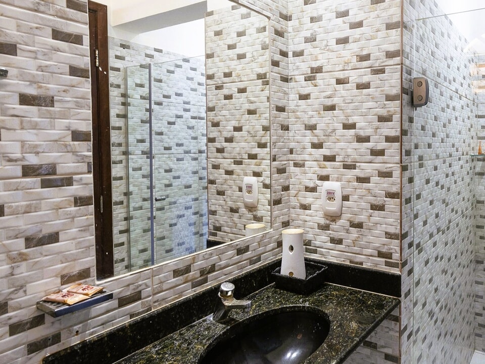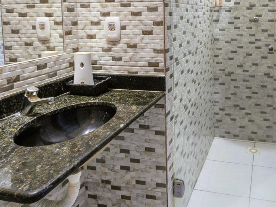 A Suíte é pensada para atender TRES PESSOAS Ela é um Suíte com 3 CAMAS DE SOLTEIRO com guarda roupa, TV, ar condicionado e frigobar - além do banheiro com box ducha. Também tem a possibilidade (sujeita a disponibilidade na hora da chegada) de escolher a solução com uma cama de Casal mais uma de solteiro. A voltagem 220V e sob pedido fornecemos secador de cabelo.